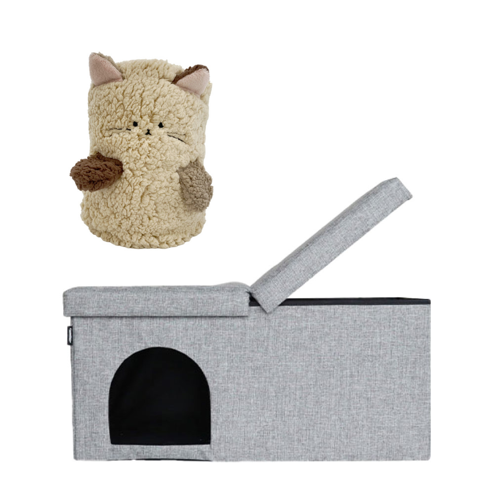 収納ボックス×ふわふわねこブランケット(ロシアンブルー)
