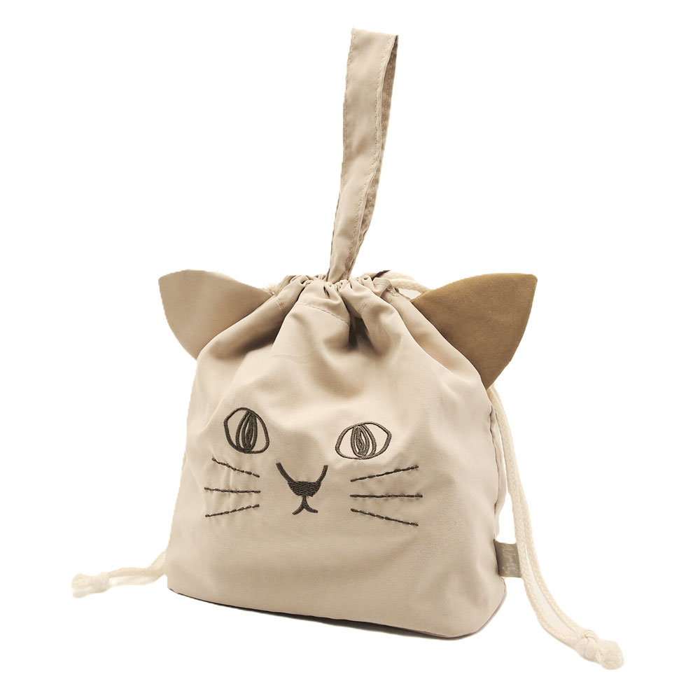 ねこのランチ巾着バッグ(ベージュ)