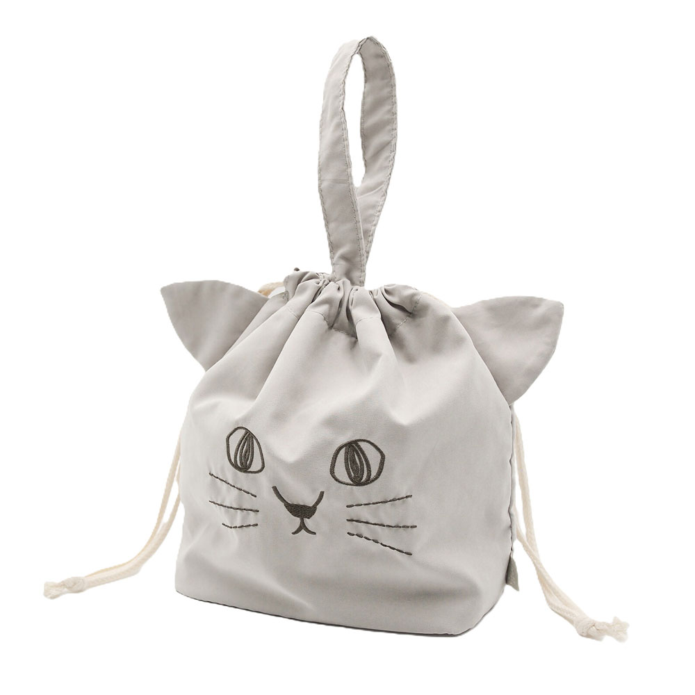 ねこのランチ巾着バッグ(グレー)