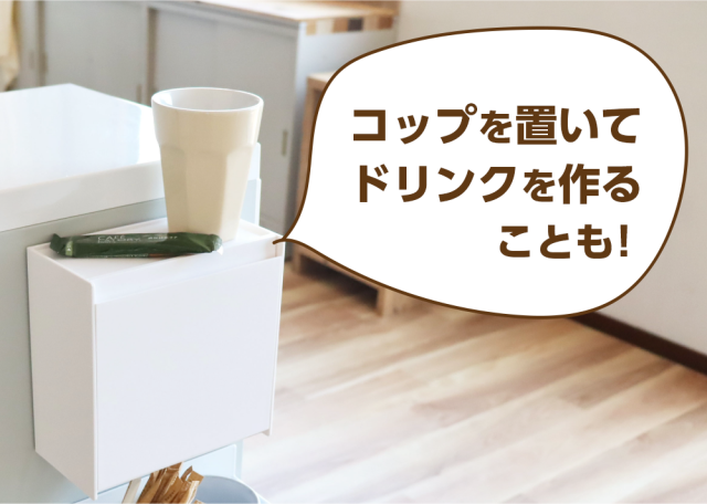 天板はトレーになっているので、コップを置いてそのまま飲み物を作ったり、一時置きにも重宝しますよ♪