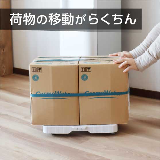お水ボトルの入った段ボール2箱を載せても、軽い力でスイスイ移動できます。