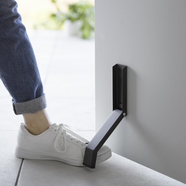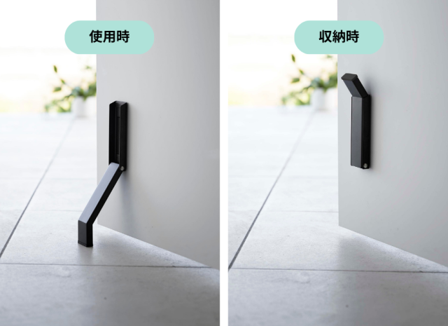 シンプルなデザインで、玄関にスッと馴染む【マグネット折り畳みドアストッパー】。