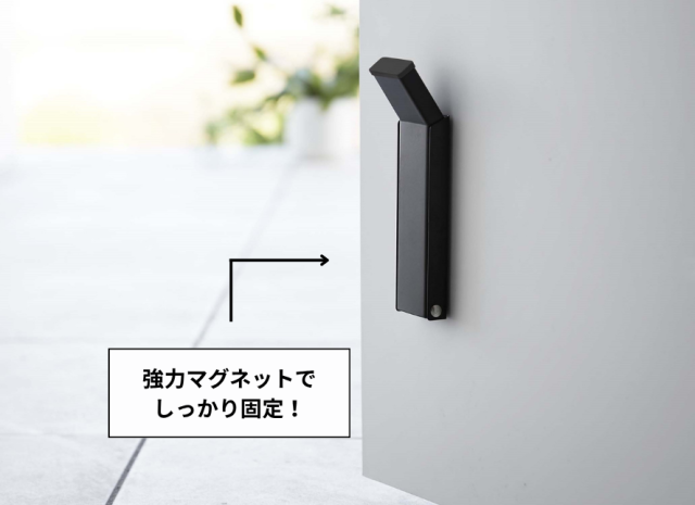 スチール製のドアにマグネットでしっかり固定できるので、工具を使わず誰でも簡単に取り付けが可能。