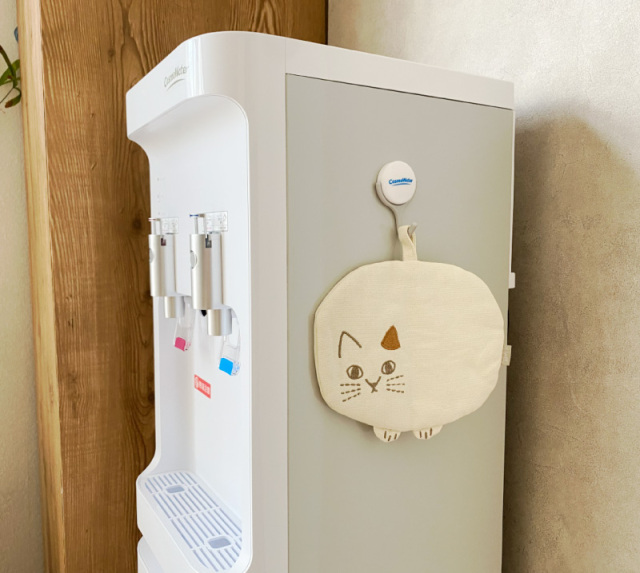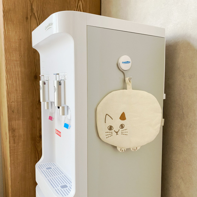 コスモウォーターの「オリジナルマグネット(別売)」などのフック付きマグネットを使用して、ウォーターサーバーの側面にかけておくのもおすすめです♪