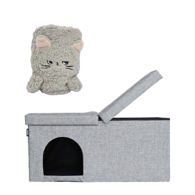 「ペットもよろこぶワイド収納ボックス」×「ふわふわねこブランケット(ロシアンブルー)」