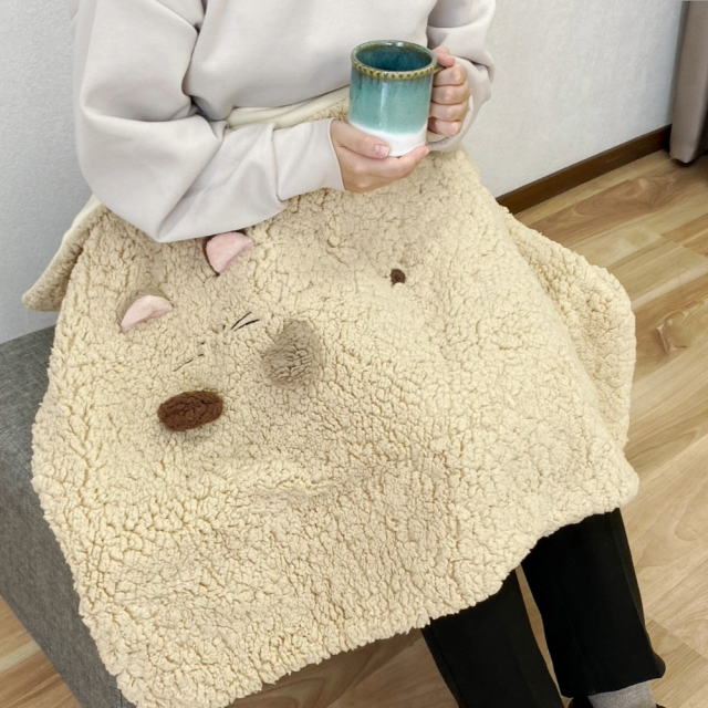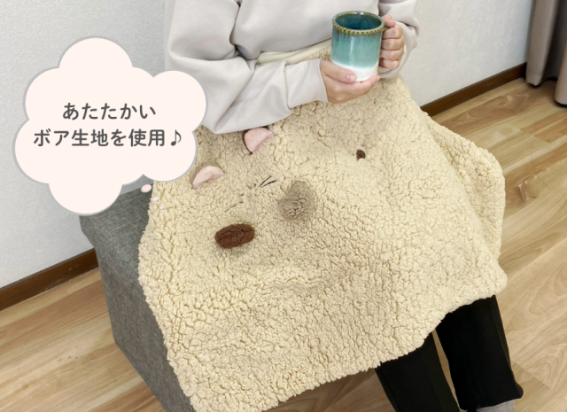 ふんわりモコモコのボア生地で、冬の寒さ対策はもちろん、冷房の効いた室内でもこれ一枚があれば安心。