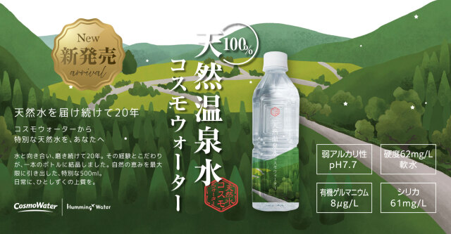 コスモウォーターからペットボトルタイプの100%天然温泉水が登場!