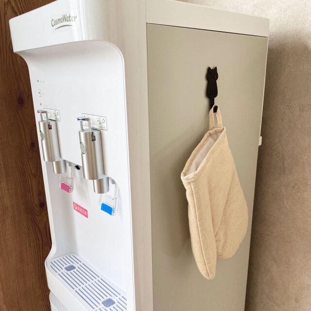「ねこのループ付きキッチンタオル」などのループがついたタオルを引っかけて、ウォーターサーバーのお手入れ用などに活用するのもおすすめです◎