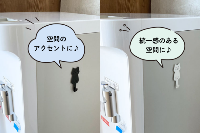 さっと取り出したいものを掛けておける便利な「ねこマグネットフック(ブラック)」。