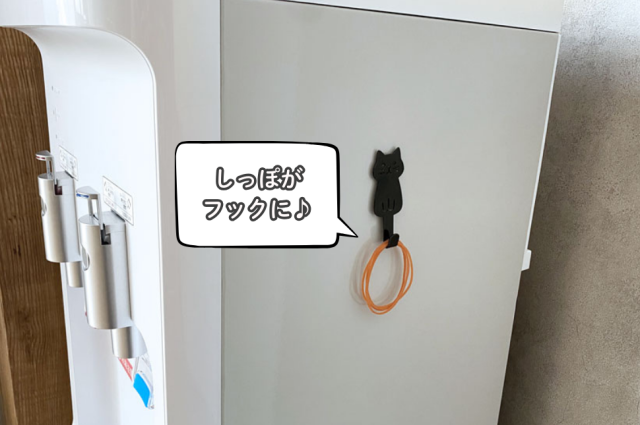 しっぽ部分に、輪ゴムやエコバッグなどを掛けられ、散らかりがちな小物をすっきり整理できます。