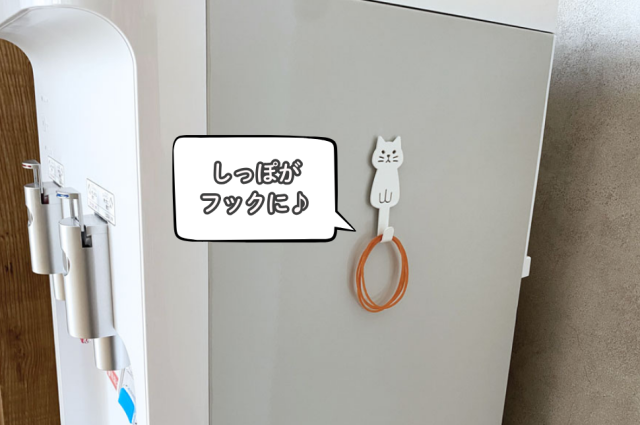 しっぽ部分に、輪ゴムやエコバッグなどを掛けられ、散らかりがちな小物をすっきり整理できます。