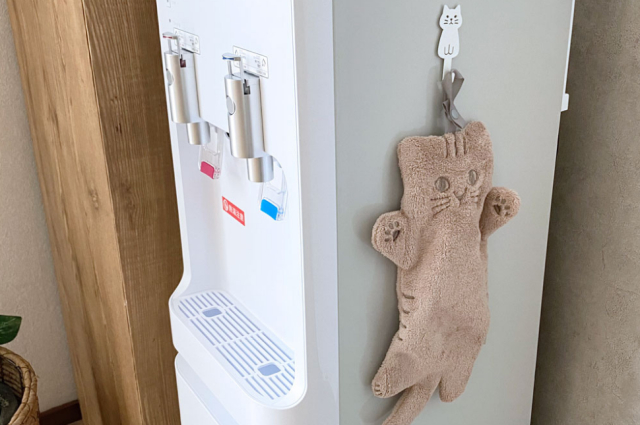 「ねこのループ付きキッチンタオル」などのループがついたタオルを引っかけて、ウォーターサーバーのお手入れ用などに活用するのもおすすめです◎